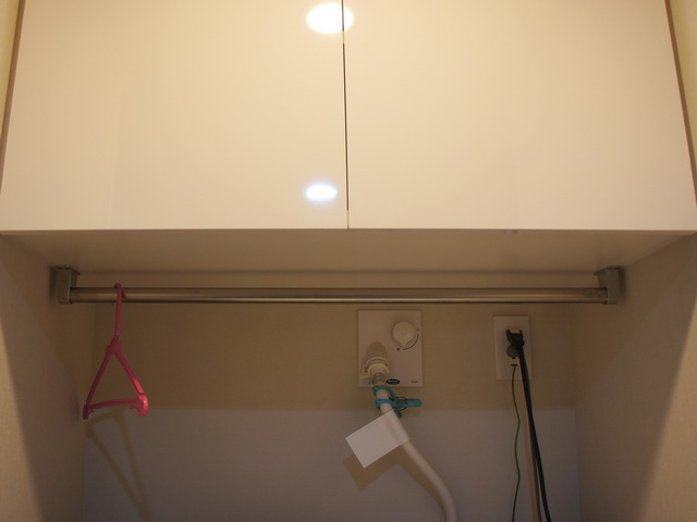 作り付け吊り戸棚 千葉県市川市U様 マンションにお住いのお客様からカウンター下収納、洗濯機上収納のご注文をいただきました。扉の面材はつやありメラミン材、下面にタオル掛けを取付。天井の換気扇と干渉しないように、ちょっと下げて取付。千葉県は工事範囲外ですが、仕事に余裕のある場合は、お引き受けする場合があります。 サイズ H600 W800 D300 家具本体 白ポリ合板 扉 つやありメラミン材 追加 ハンガー 隙間処理 あり 参考価格 ¥55,000(本体価格)(採寸打合せ費+取付費は別途)